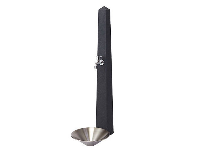 シンプルな水栓柱にステンレスカラーのパンを合わせました。すっきりとしたデザインの組み合わせで、モダンな住宅にもマッチします。