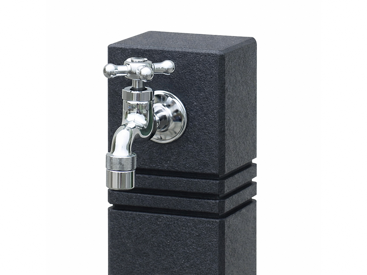 立水栓ユニット スラインは蛇口が標準セットになっている塗装仕上コンクリート製の立水栓です。蛇口近くには3本のラインがワンポイントで入っています。本体カラーはアイボリーとダークグレーの2色展開です。