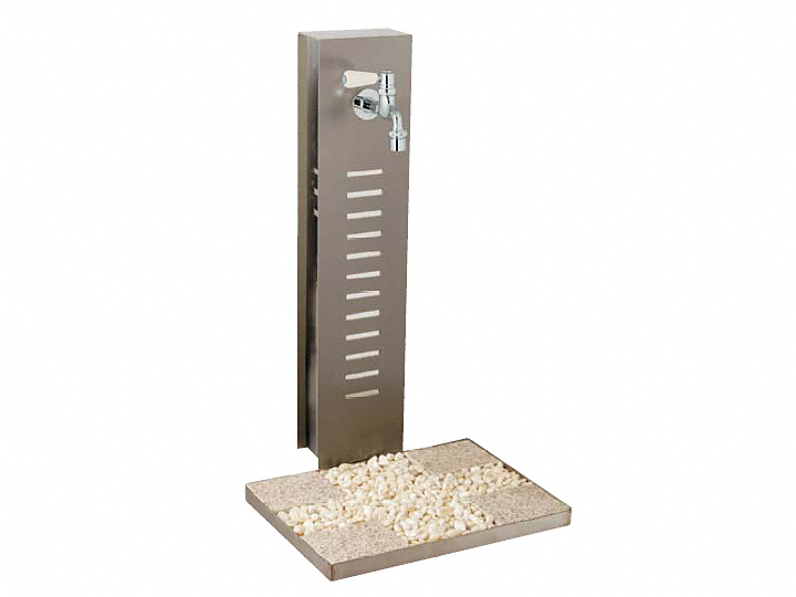 シンプルさと和の落ち着いた雰囲気を持つ立水栓です。自然な色合いが、上質な空間やガーデンに調和します。御影石を使用したパンには排水のための目皿付きです。