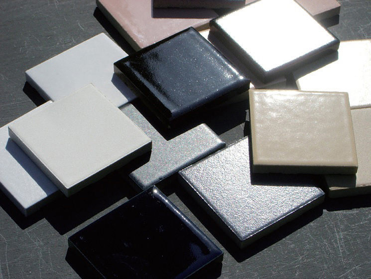 同系色にて、光沢の違う3種類の釉薬で変化をもたせたキャッチーなデザイン。水廻りのキッチン・トイレなどをオシャレに彩ります。