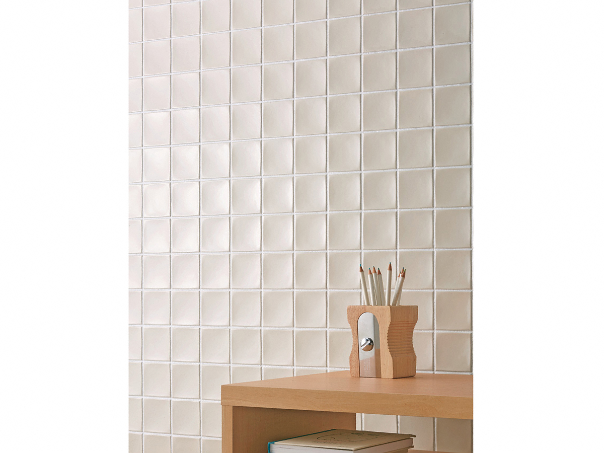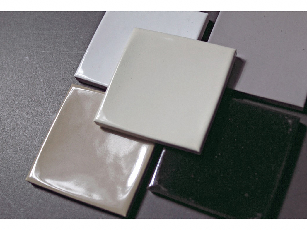 見る角度により、光の反射が違って見える不思議なタイルです。焼物特有の自然な色幅も特徴です。