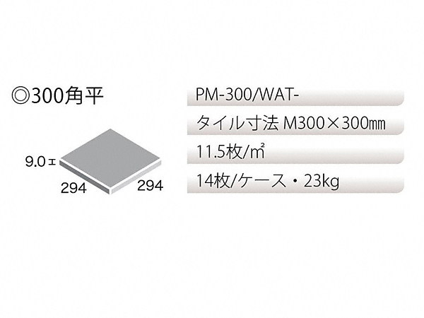 【大きさ】294×294×9【目安量】11.5枚/u 焼物特有の自然な色ムラと色幅があります。凹凸部にモルタル等が付着しないように十分に配慮して施工してください。屋外壁・屋内壁に使用される場合は、推奨施工方法をご確認ください。スロープ部には使用しないでください。