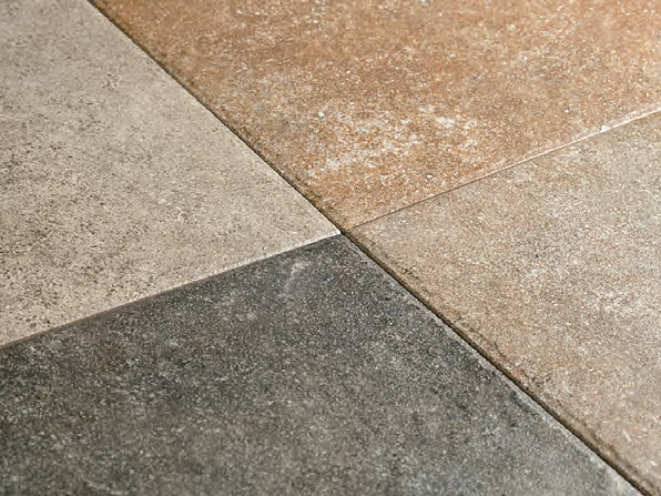 土ものの自然美と質感を追求。和に、洋に格調高い空間を演出します。一つひとつのタイルの表情が異なり、大きな表現が可能。 超汚れ防止機能付き CRS値(滑り抵抗値)0.5以上