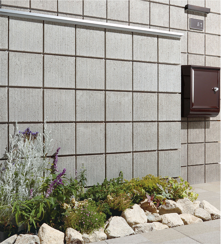 グレー、ベージュ、ブラウンの全3色からお選びいただくことができるブロックです。1つのブロックに中心で目地のようなデザインになっているため、設置した際に格子状のブロックが完成します。