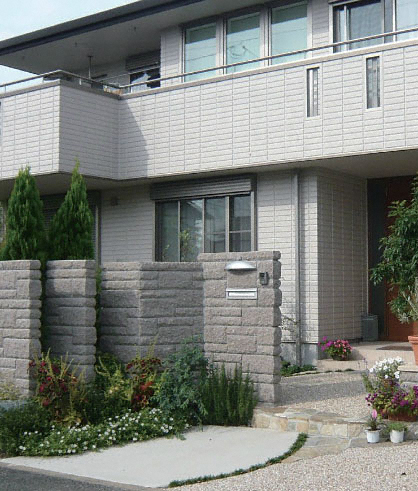 やさしい石積みの風格。石のやすらぎと風格を積み上げるアルク。自然な風合いを持った独自のこぶ出しで天然石の味わいと存在感を表現しました。高さが2倍のアルク200を組み入れて、さらにデザインの幅を広げることもできます。