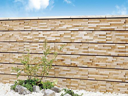 もくめ調のような柔らかで上質な印象を演出する硬質砂岩を。ブロック表面にあしらいました。絹のような表情とランダムな陰影を創り出すテクスチャーデザインは、これまでにない高級感を感じさせるエクステリアアイテムとなります。