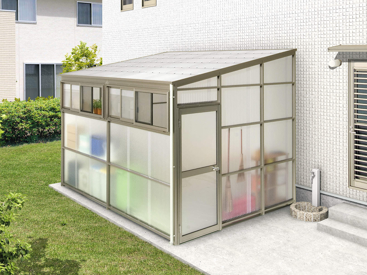 雨の日も快適に作業ができる多目的スペース。幅広いサイズ展開があるので、庭のスペースを有効活用できます。目隠し機能も抜群なので、道路から見てもスッキリ綺麗に納まります。