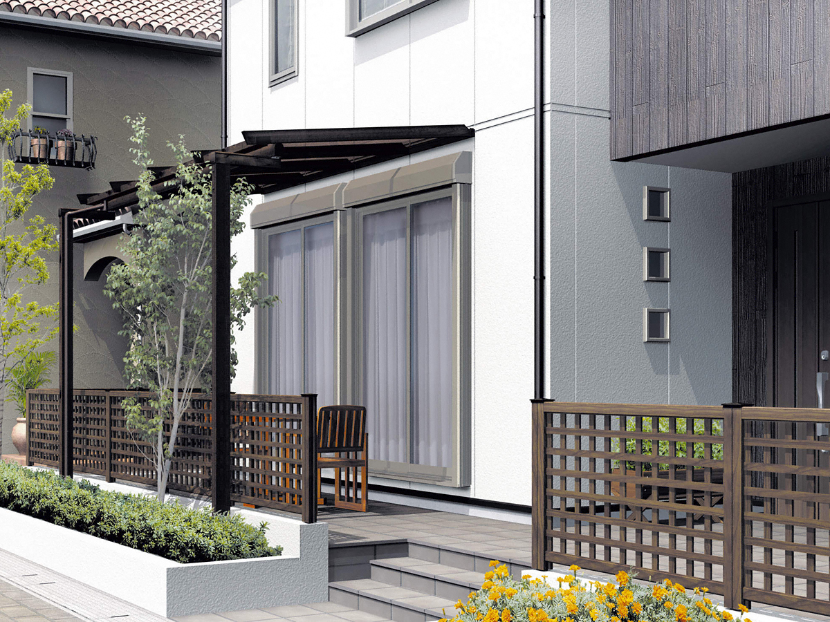 木の素朴さとぬくもりを感じる木目調テラス。多彩なタイプと納まりバリエーションで新しいお庭をナチュレテラスがご提案。ナチュラルテイストのテラスをご希望であれば、ナチュレが最適。