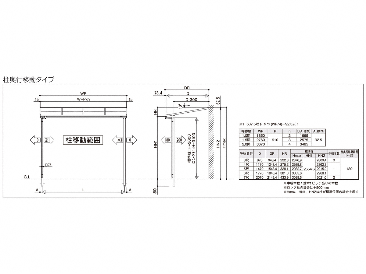 | 柱タイプ | 柱標準タイプ(柱3本) / 柱奥行移動タイプ(柱3本) |
