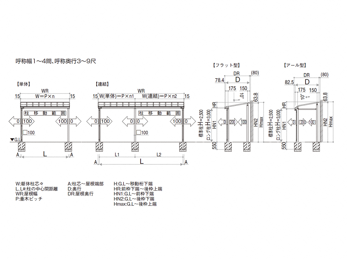 | 柱タイプ | 柱標準タイプ(柱4本) / 柱奥行移動タイプ(柱4本) |