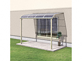 垂れ木幅を大きくすることにより、屋根パネル抜け防止の強度を向上させた風に強い屋根で、耐風圧強度は風速36m/s相当です。ポリカーボネート板はガラスに比べ約250倍の耐衝撃強度があり、有害な紫外線をほぼ100%カットします。