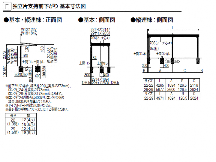 | 柱タイプ | 標準柱20(有効高 約2,000mm) / ロング柱24(有効高 約2,400mm) / ロング柱28(有効高 約2,800mm) |