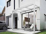 Gルーフ テラスタイプ 木調色は雨をしのぎ、太陽光をコントロールする屋根が特徴的なテラス屋根です。天井材を加えることで、優れたデザイン性の屋根空間を形成できます。クリエモカなど4種類の木調本体カラーに、屋根材はクリアな透明素材と、すりガラス風のクリアマットを準備。耐積雪能力は20cm相当。