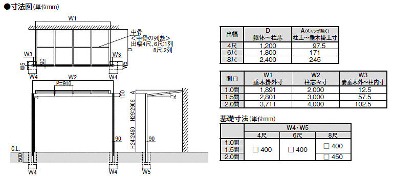 | 柱タイプ | 柱位置固定タイプ(柱2本) |