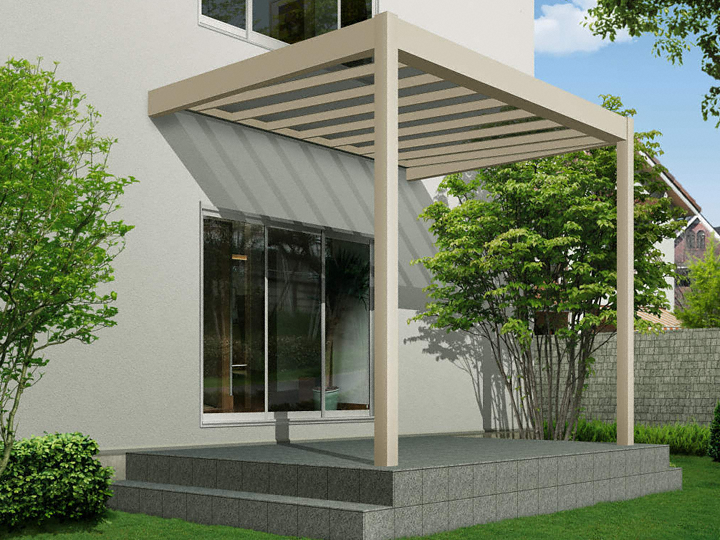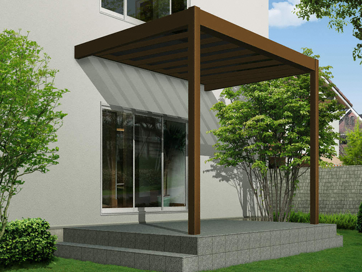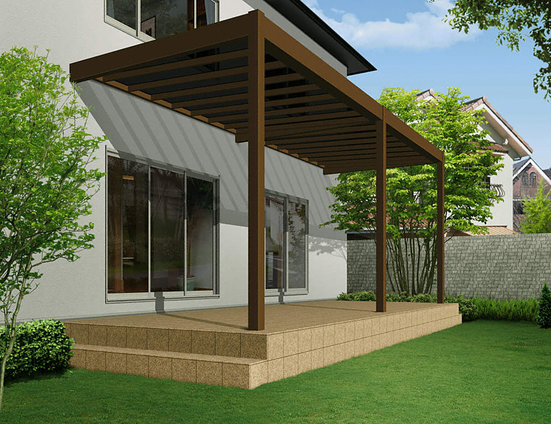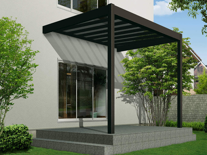 お庭とご住宅の空間をトータルコーディネイトすることのできるテラス屋根となっております。様々な外構のお住まいに対応できるカラーバリエーションです。