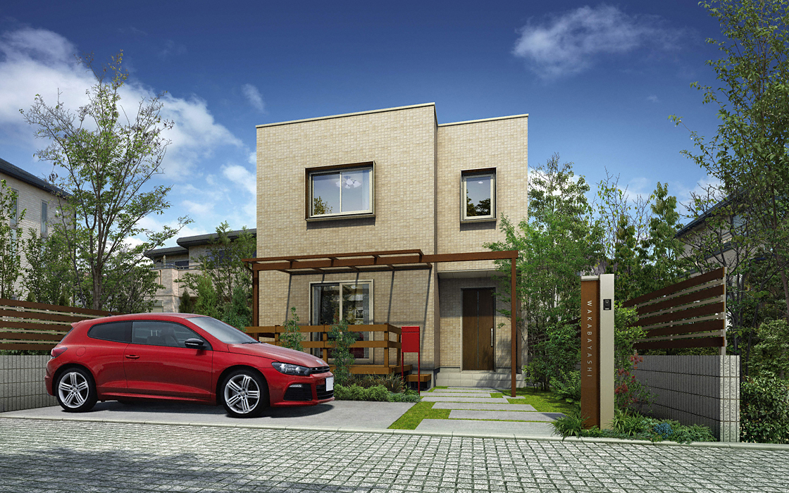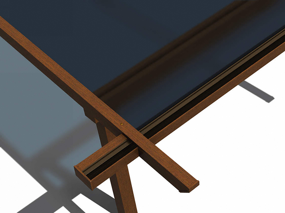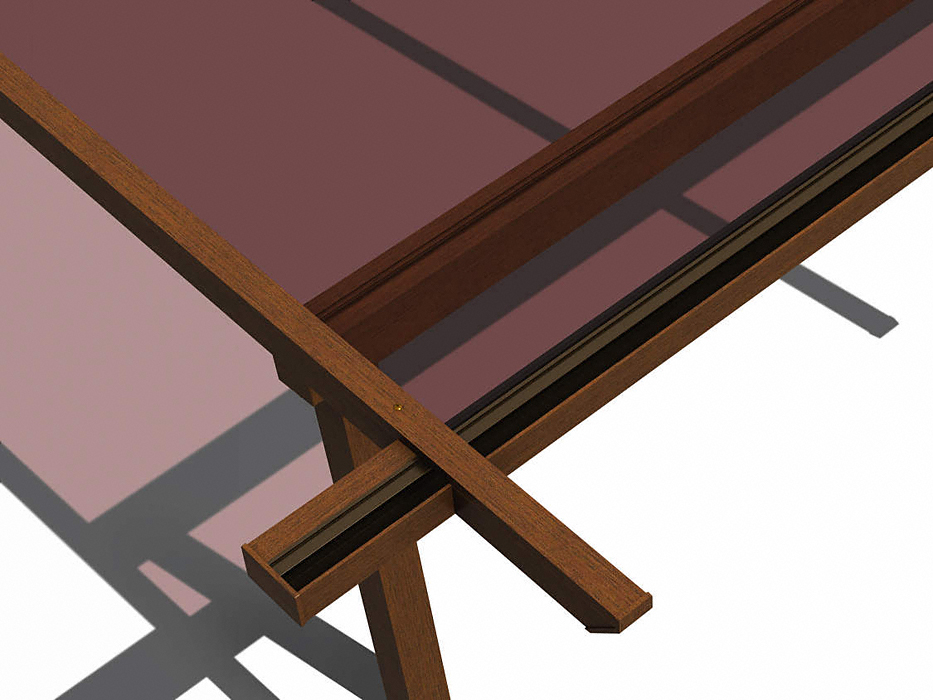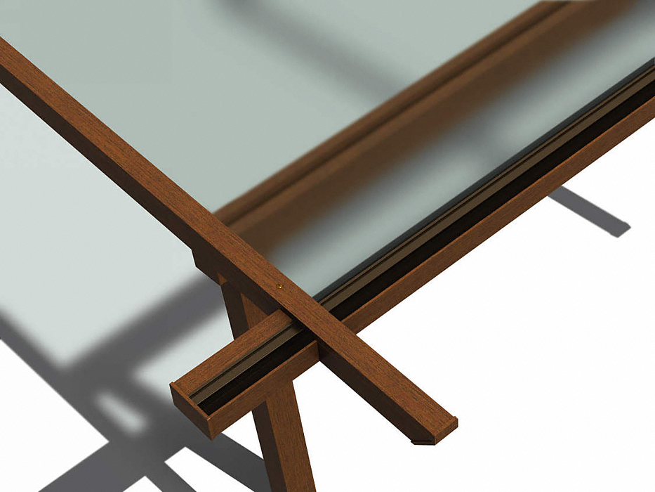 各部材断面を四角い形にして、端には小口キャップで木目柄を施すことで、連続感のある仕上がりです。シンプルなフレームタイプは様々な住宅テイストに調和します。