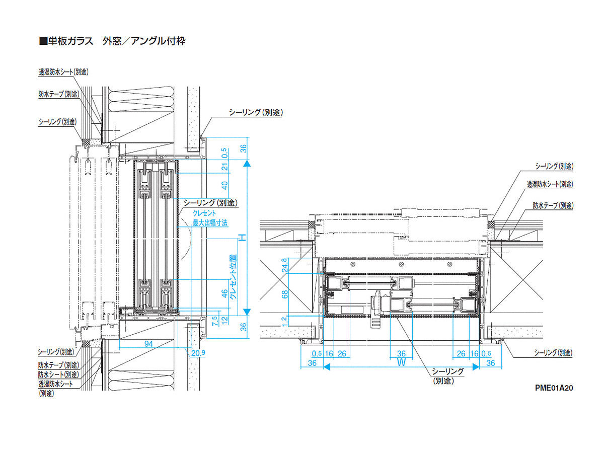 プラメイクEU 引違い窓 2枚建 浴室仕様