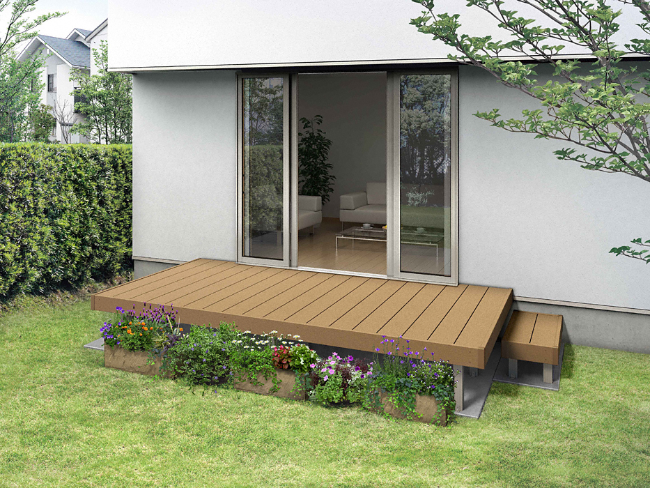 リウッドデッキ S(旧商品200)は天然木より強度低下や変色・退色が少ないので、長期間心地の良いデッキライフをお過ごしいただけます。エクスショップでは『天然木に近い質感&デザイン』と『人工木ならではの安全性&機能性』を兼ね備えたリウッドデッキ S(旧商品200)をおすすめします。
