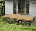 リウッドデッキ 200は木粉とポリプロピレンを混合したリウッド(再生木)でできた人工木デッキです。硬度・耐水性・耐候性・防腐朽性の高さが特徴で、水濡れやシロアリ・菌類による腐食の心配がありません。目地幅は安全性と意匠性を考慮した3mm幅設定。※束石の手配は別途。