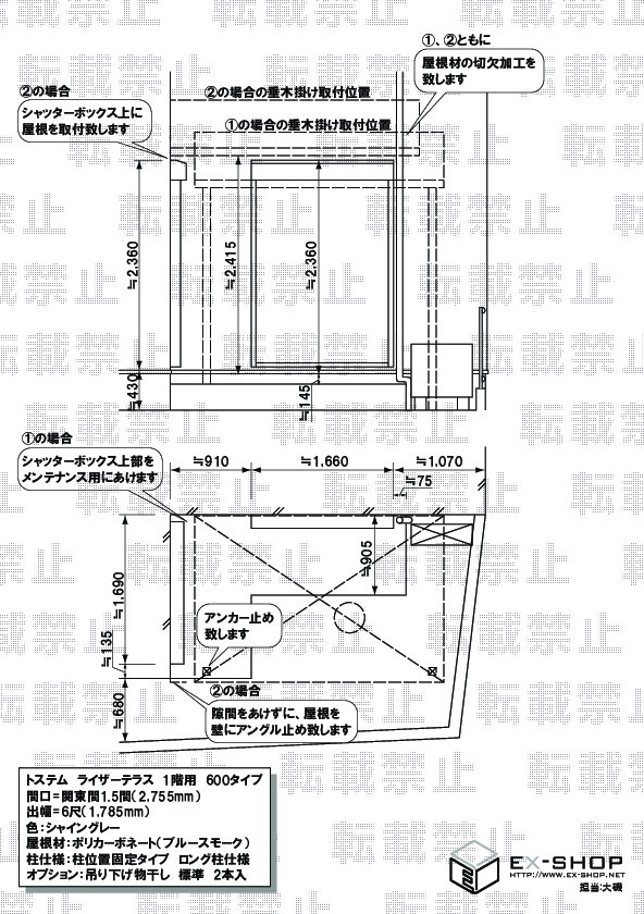 サイズ | 間口 2,755mm 出幅 1,785mm |