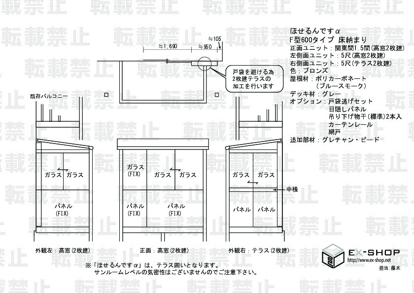 | サイズ | 正面ユニット 3,005mm 左側面ユニット 1,485mm 右側面ユニット 1,485mm |