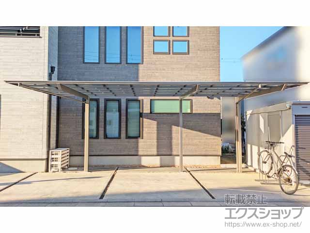 フーゴ F 逆勾配 1台用 延長(フラットスタイル)は前面に向かって下がる屋根勾配が特徴のカーポートです。屋根の設計により、自宅側への雨や雪の侵入と地面からの水跳ねを減少させることができ、さらに風速Vo=38m/sまでの風圧と20cmの積雪に対応する耐性も備えています。
