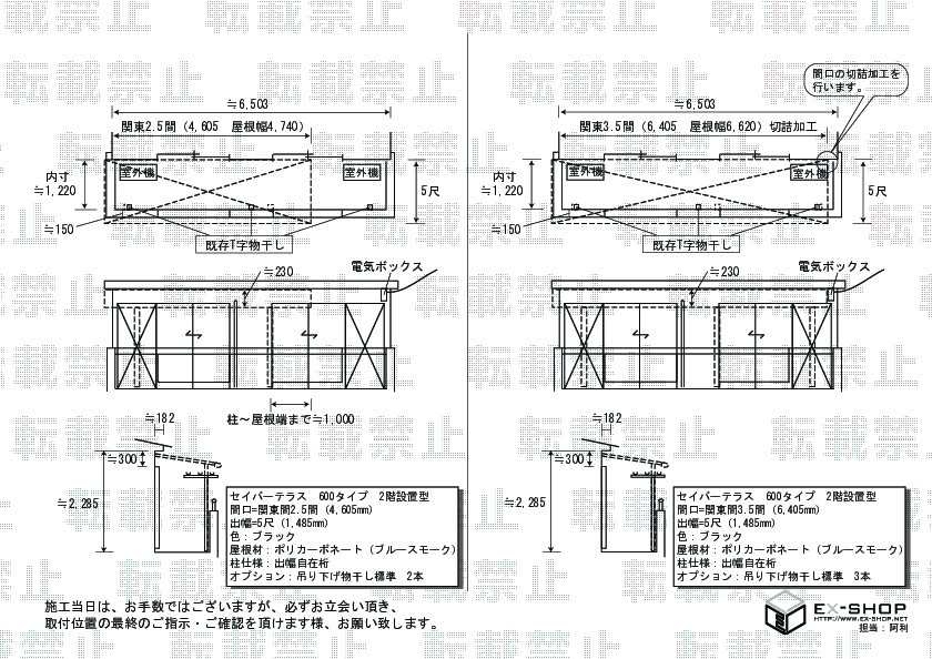 サイズ | 間口 6,405mm 屋根幅 6,620mm 出幅 1,485mm |