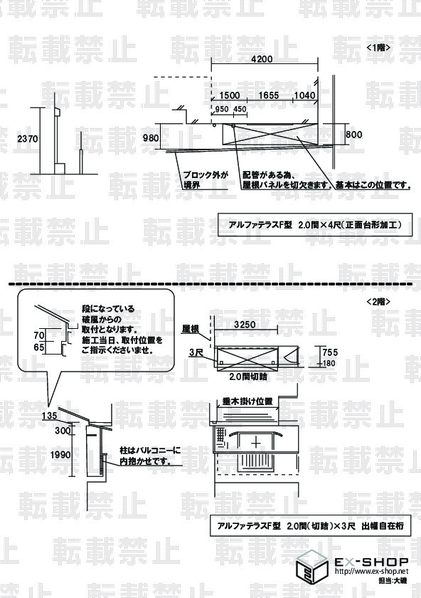 | サイズ | 間口 3,650mm 出幅 885mm |