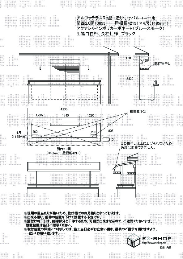 | サイズ | 間口 3,855mm 出幅 1,185mm |