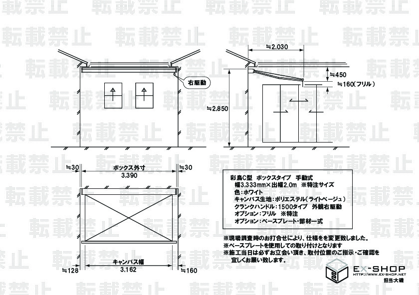 サイズ | 間口 3,333mm 出幅 2,000mm |