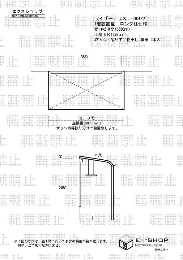 サイズ | 間口 3,650mm 出幅 1,785mm |