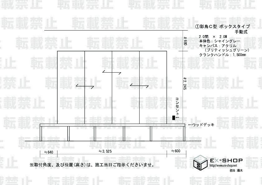 サイズ | 間口 3,640mm 出幅 2,000mm |