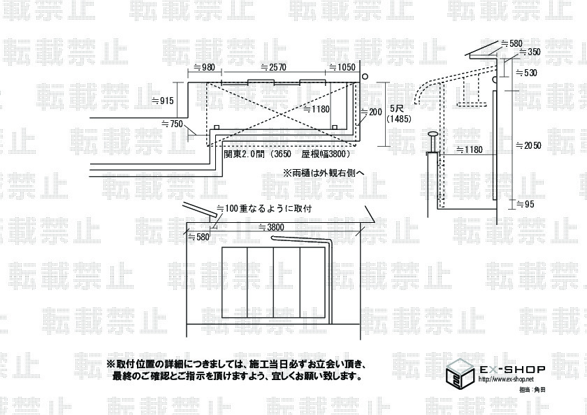 サイズ | 間口 3,650mm 出幅 1,485mm |