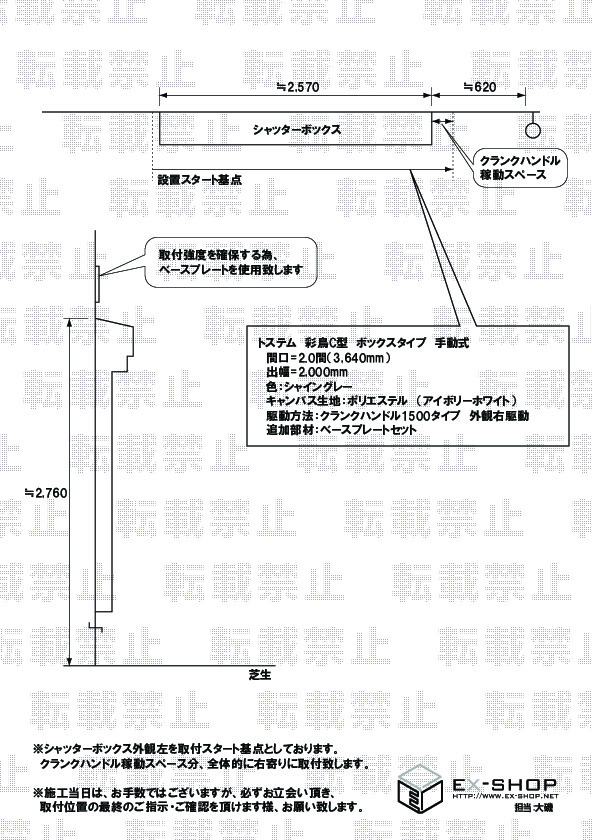 サイズ | 間口 3,640mm 出幅 2,000mm |