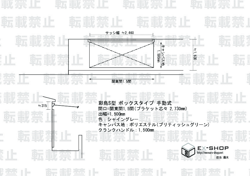 サイズ | 間口 2,730mm 出幅 1,500mm |