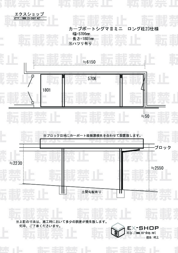 敷地幅が1800mmしかなかったので、柱の太さ分デットスペースになるのがもったいない感じです。スペースが無い分しかたないですよね。長さは5700mmの標準仕様が有り予算的にも思った以上に安くあがりラッキーでした。