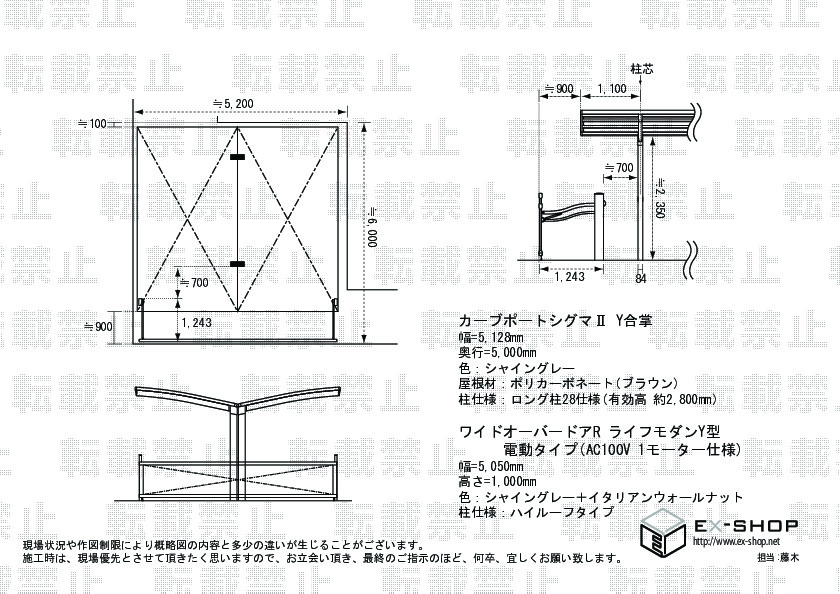 Y合掌タイプのメイン支柱の強度を増して、もう少し細いものに出来ないかと感じた。敷地に余裕が無いので駐車不可の面積が気になる。