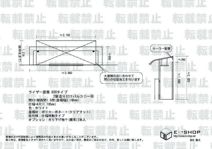 サイズ | 間口 3,160mm 出幅 1,185mm |