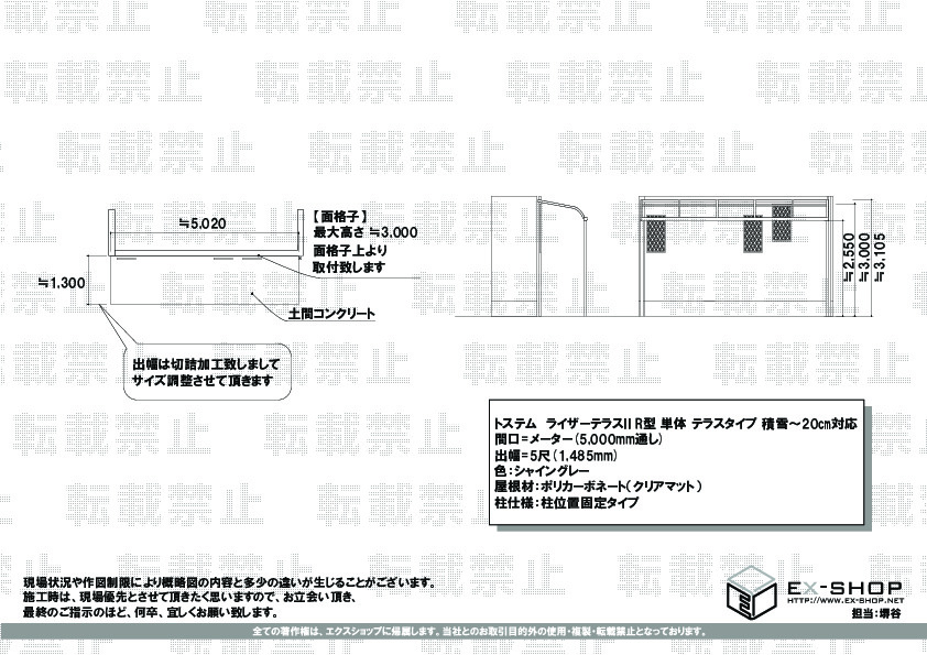 サイズ | 間口 5,000mm 出幅 1,485mm |