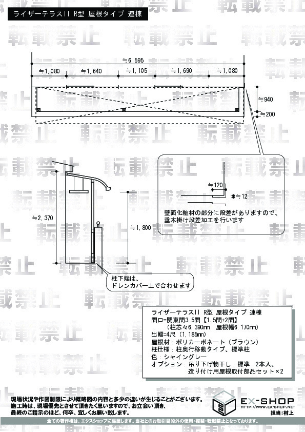 サイズ | 柱芯々 6,390mm 屋根幅 6,170mm 出幅 1,185mm |