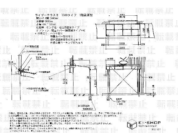| サイズ | 間口 3,440mm 屋根幅 3,660mm 出幅 1,785mm |