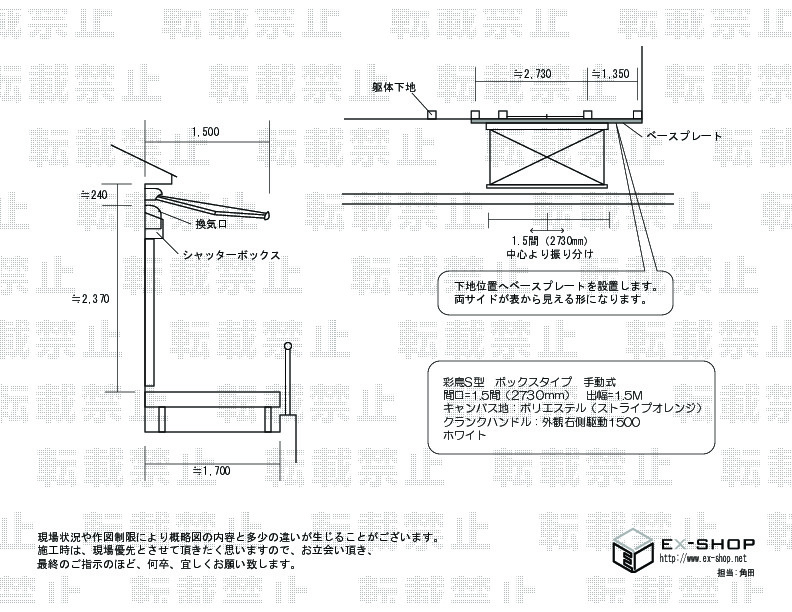 サイズ | 間口 3,640mm 出幅 1,500mm |