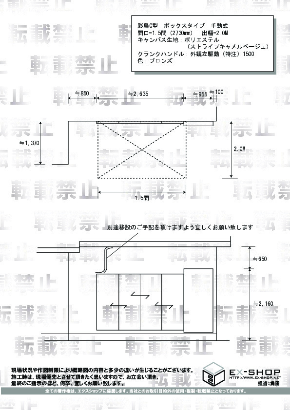 サイズ | 間口 2,730mm 出幅 2,000mm |