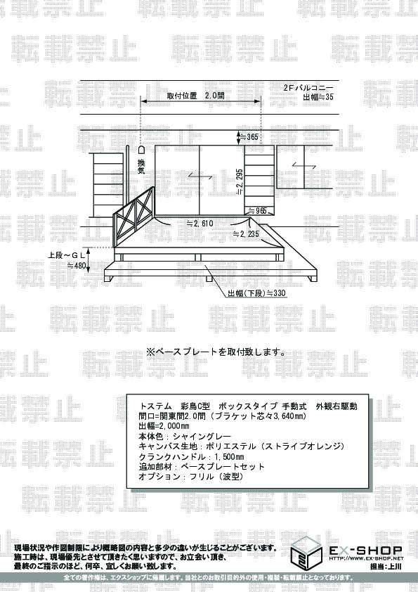 サイズ | 間口 3,640omm 出幅 2,000omm |