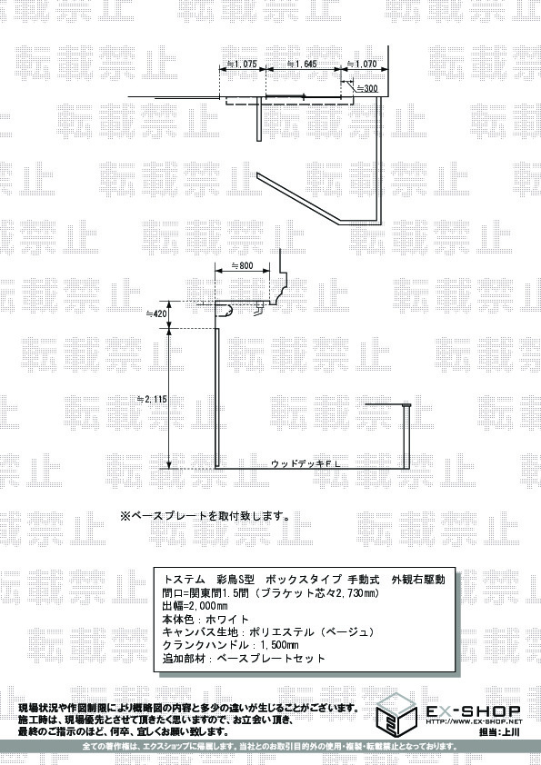 サイズ | 間口 2,730mm 出幅 2,000mm |