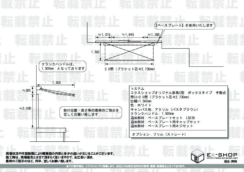 サイズ | 間口 3,640mm 出幅 1,500mm |