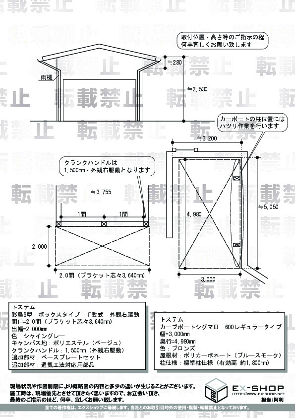 サイズ | 間口 3,640mm 出幅 2,000mm |