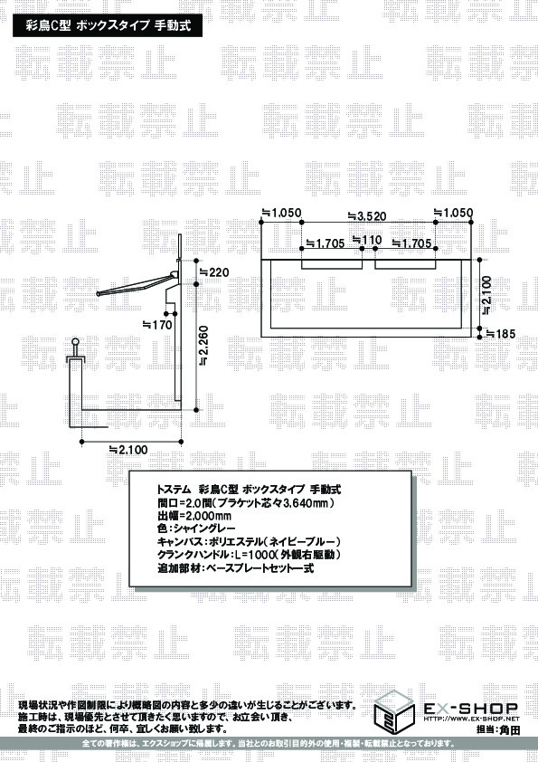 サイズ | ブラケット芯々 3,640mm 出幅 2,000mm |