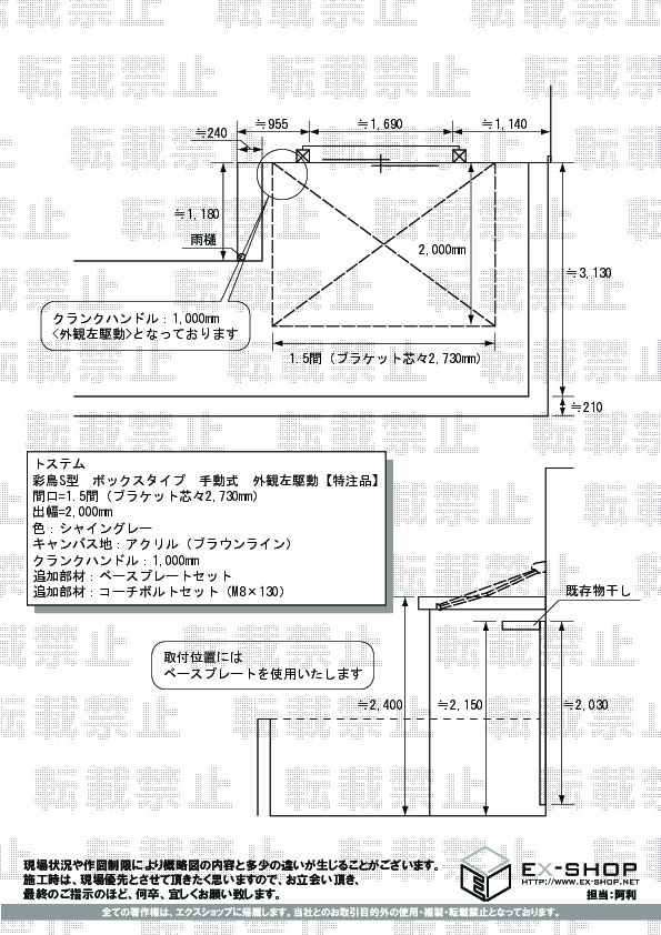 サイズ | 間口 2,730mm 出幅 2,000mm |