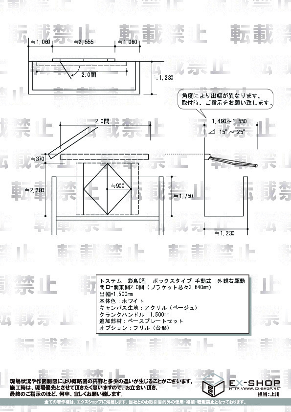 サイズ | ブラケット芯々 3,640mm 出幅 1,500mm |